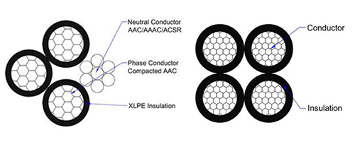 ► ConstructionConductors are concentrically stranded, compressed 1350-H19 aluminum. Insulated with either polyethylene or cross-linked polyethylene (XLPE). Neutral messengers are concentrically stranded 6201, AAC, or ACSR. Conductors are manufactured with ridges for phase identification (one conductor one ridge, one conductor two ridges, one conductor plain.)