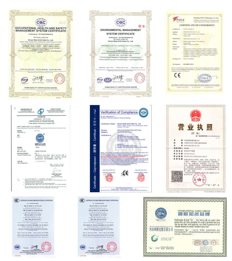 4, To ensure no problems before delivery, all the raw materials and cables are supervised and inspected again by the experts of inspection institution for inspection institution for cable. we could offer the international quality certification of ISO9001 and CE, and the inspection report of SGS, BV, etc, Quality Certificates.