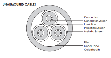 10)18/30(36)kV,19/33(36)kV,Three Cores,Al or Cu/XLPE/CTS/PVC Unarmoured Power Cable