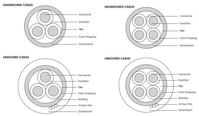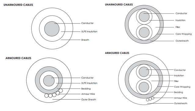 UnAr: Unarmoured/STA: Double Steel Tape Armoured/SWA: Galvanized Steel Wire Amoured |